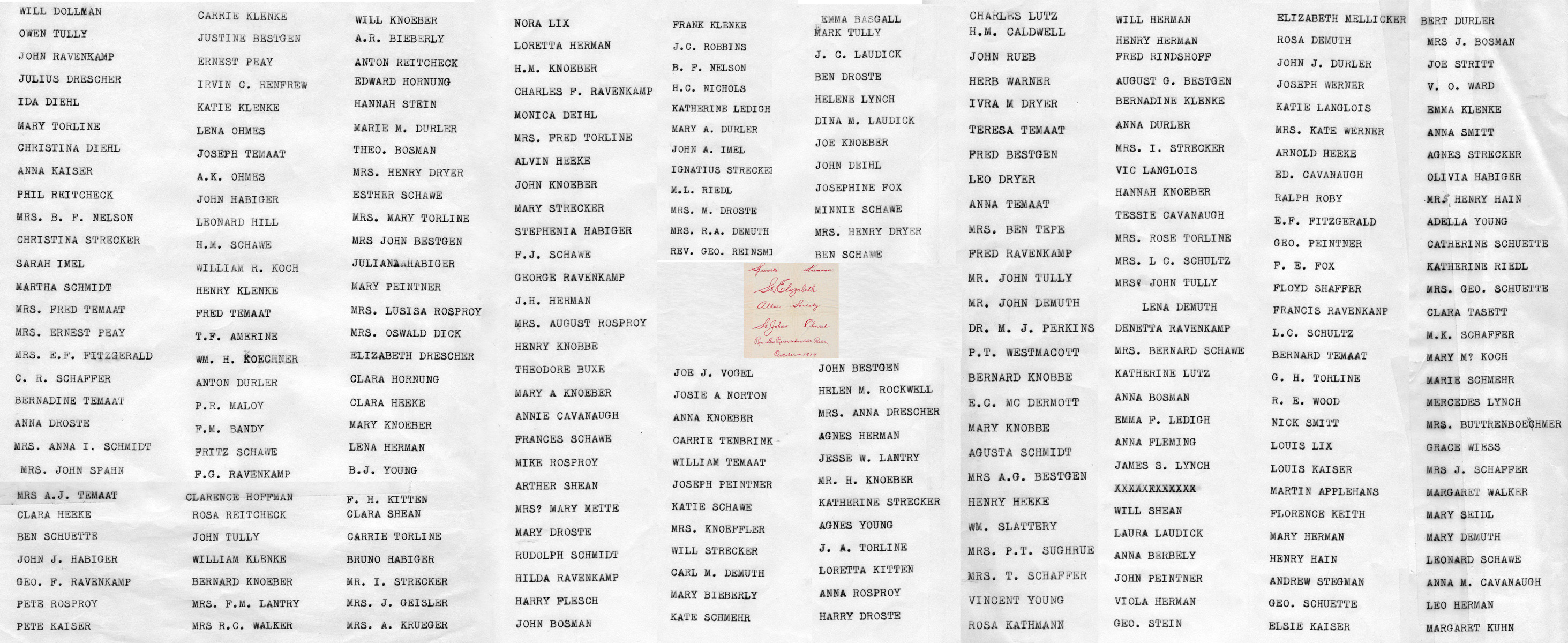 List of Signatures on the St. Elizabeth Altar Society Quilt. Photo Courtesy of Larry Strecker.