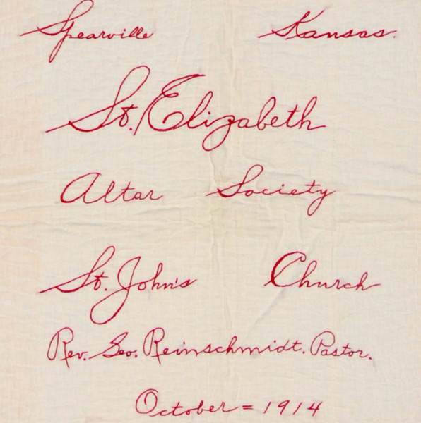 St. Elizabeth Altar Society Quilt created in October 1914. Photo Courtesy of Larry Strecker